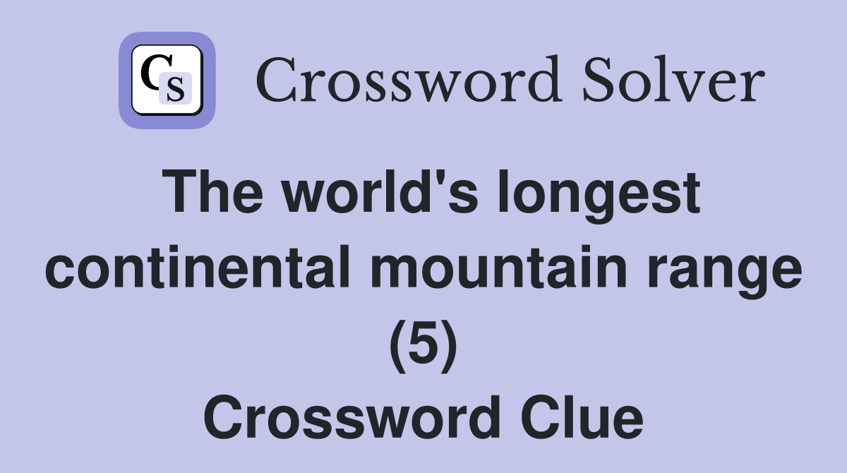 The world #39 s longest continental mountain range (5) Crossword Clue