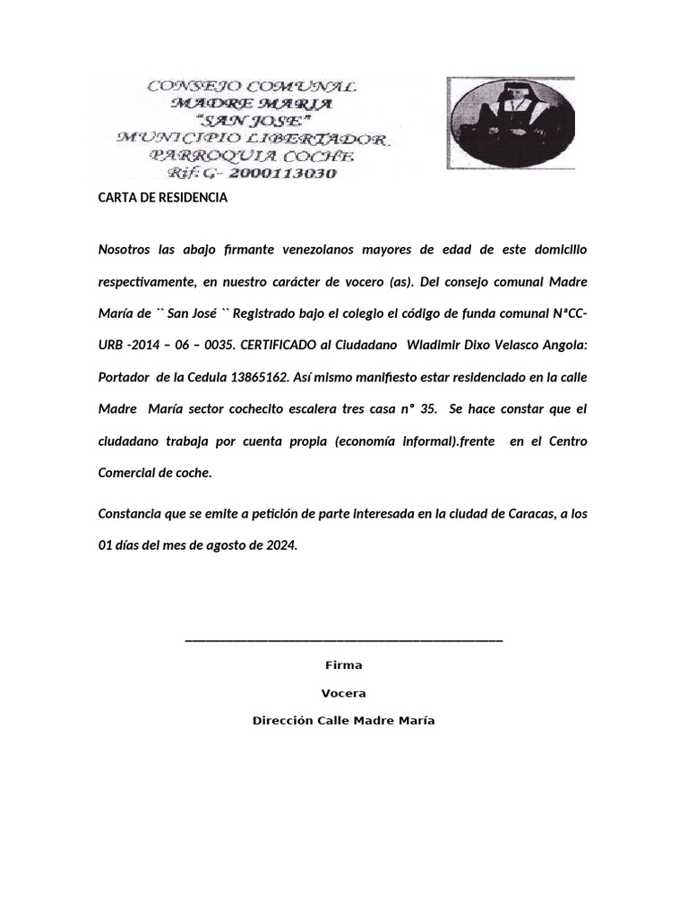 Carta de Residencia PDF