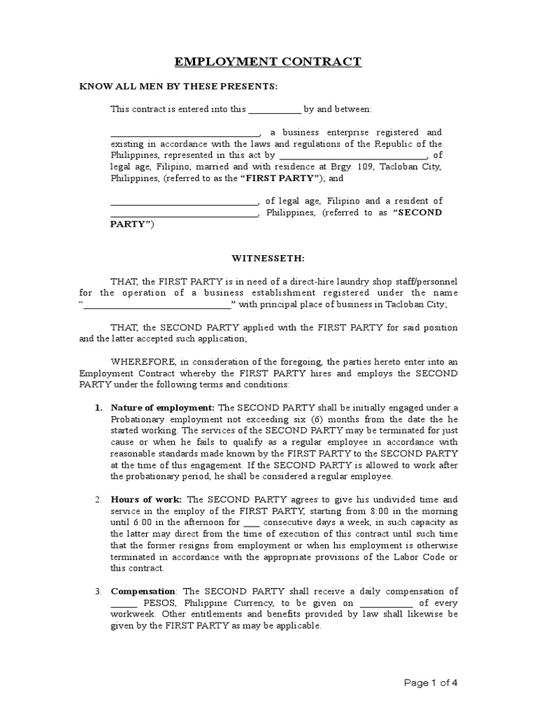 Employment Contract: Know All Men by These Presents PDF Laundry
