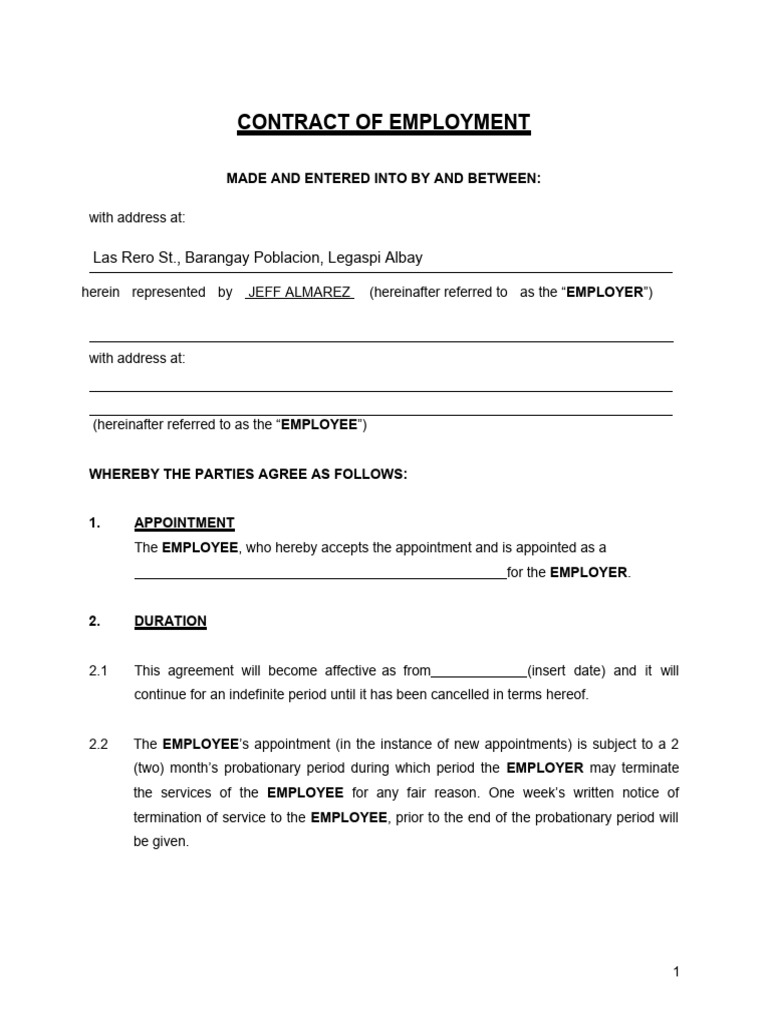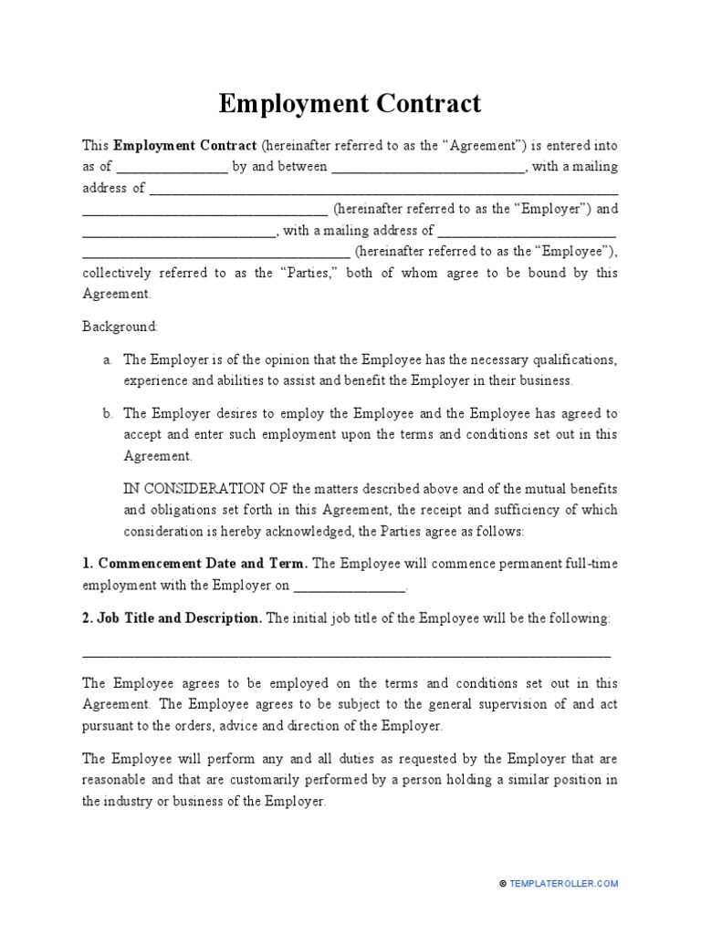 Employment Contract Template Word Doc Template 1 : Resume Examples #