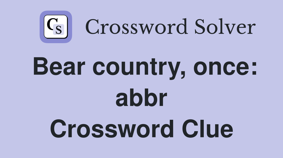 Bear country once: abbr Crossword Clue Answers Crossword Solver