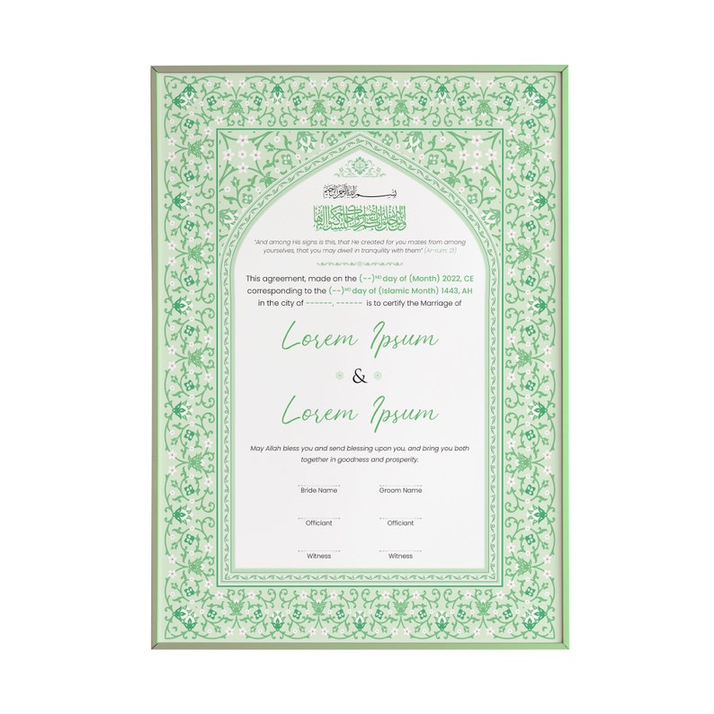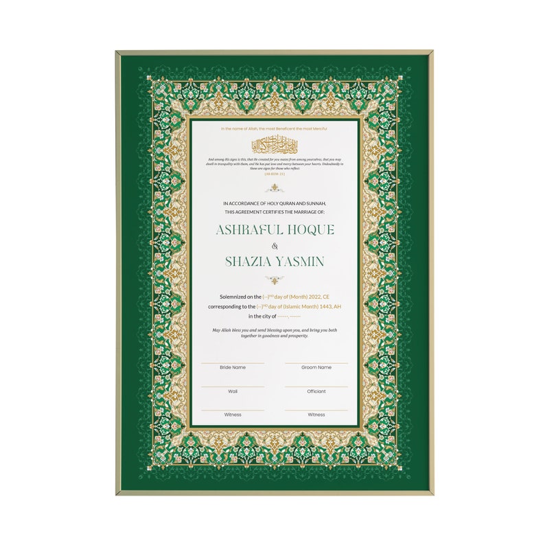 Nikkah Certificate Nikkah Nama Nikkah Contract Engagement Etsy