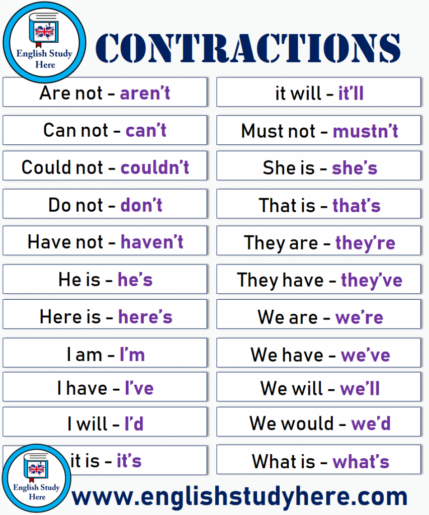Top 70 Most Popular Contractions in English with Examples ESLBUZZ