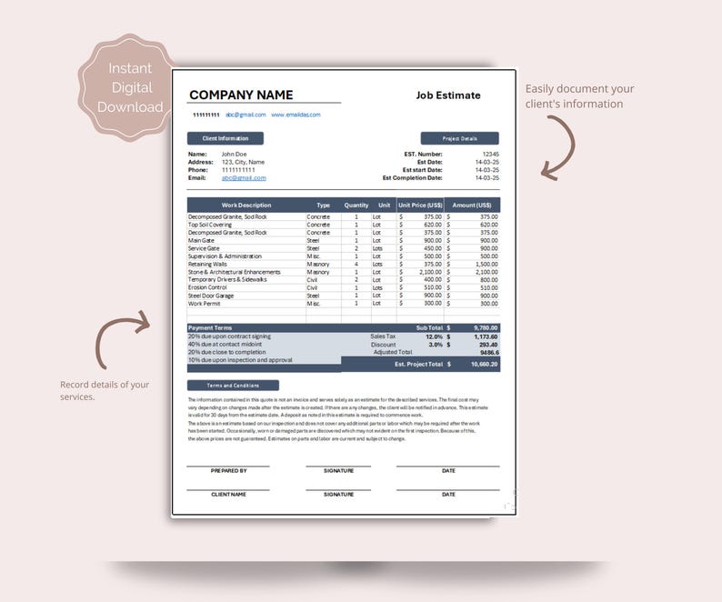 Printable Job Estimate Template