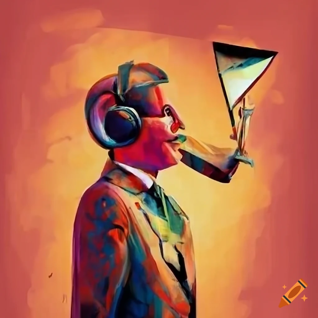Abstract cubist aviation control tower operator celebrating with