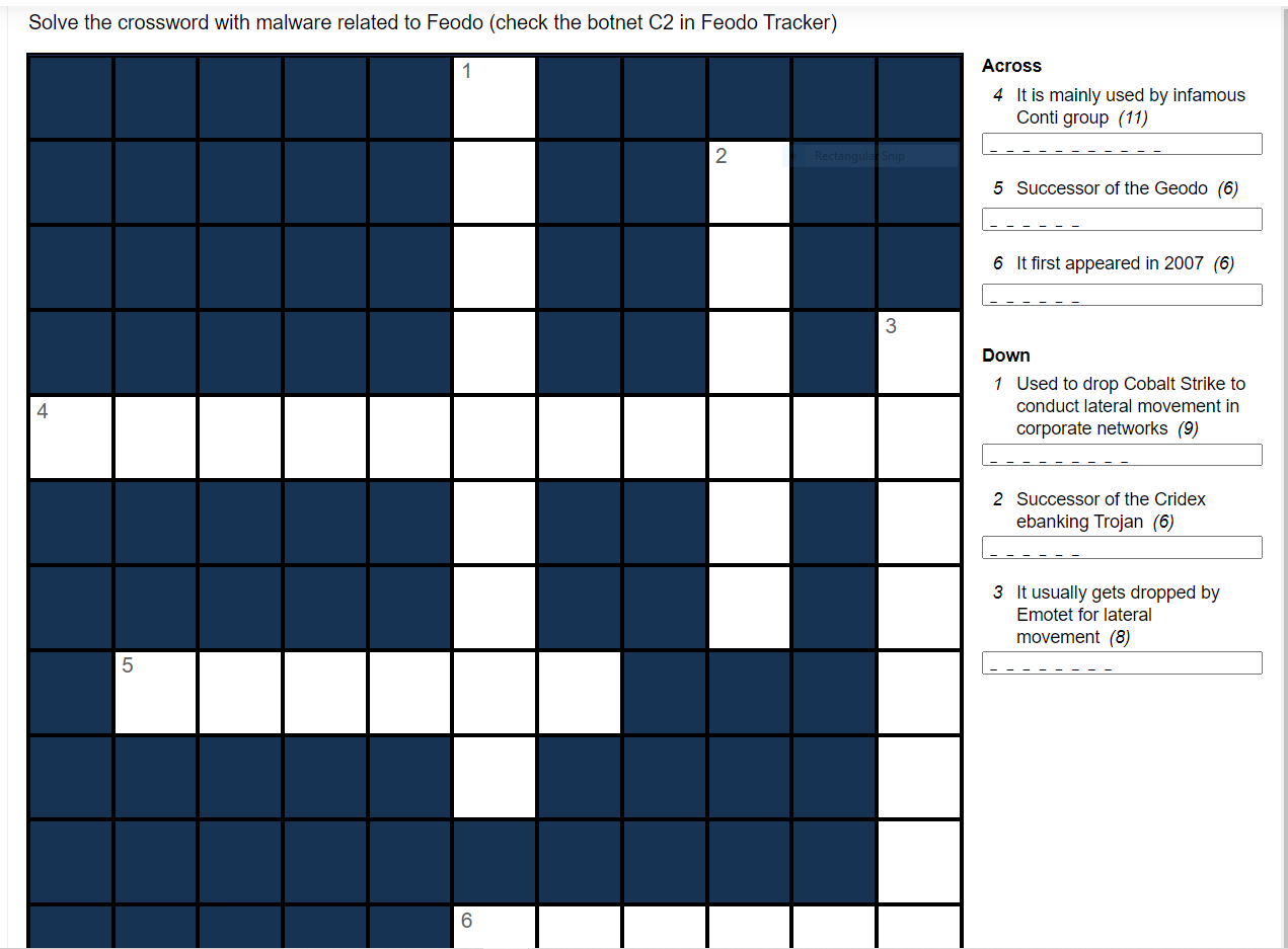 Solved Solve the crossword with malware related to Feodo Chegg com