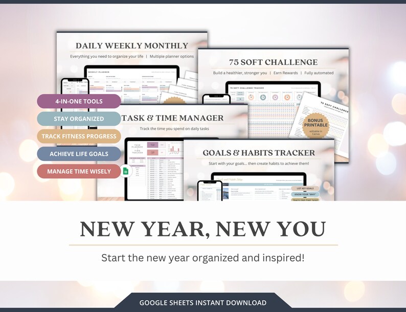 2025 Bundle New Year Resolution Planner Habit Tracker Google Sheet
