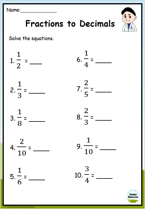 Converting Fractions to Decimals Worksheets Teaching Resources