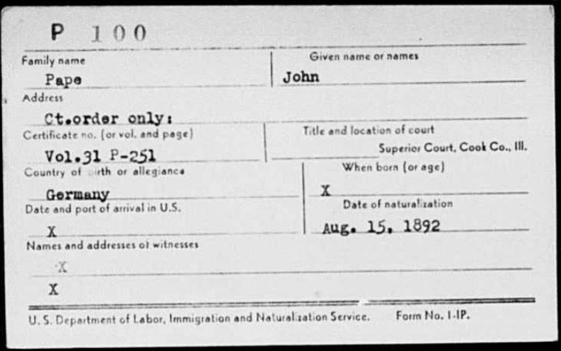 ABT UNK: Wordless Wednesday: John Pape #39 s Naturalization August 15 1892