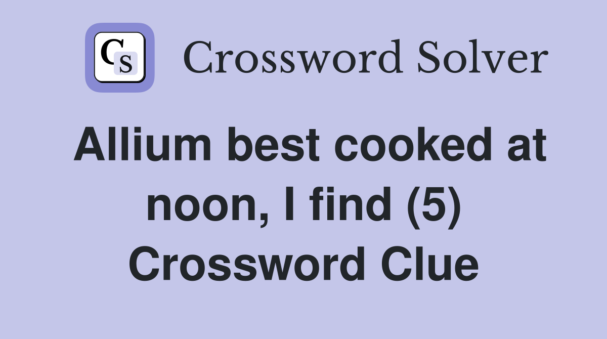 Allium best cooked at noon I find (5) Crossword Clue Answers
