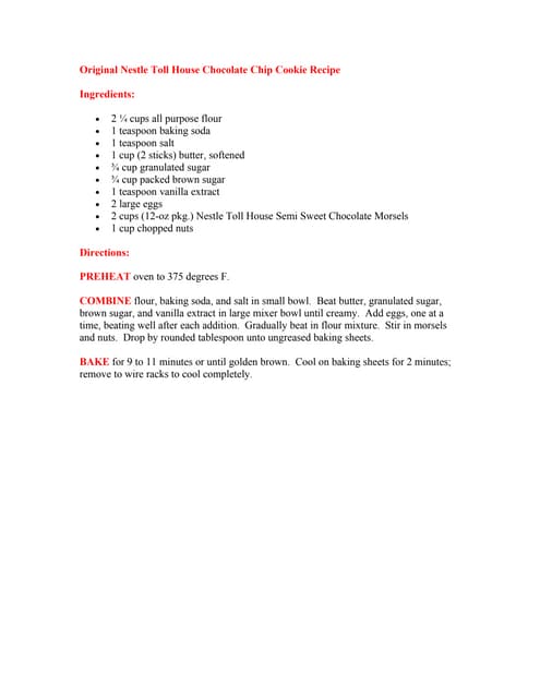 Printable Chocolate Chip Cookie Recipe FREE Printables