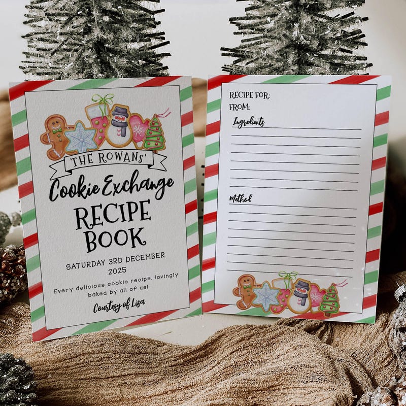 Christmas Cookie Recipe Card Template Editable Holiday Party Etsy