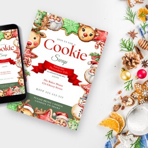 Holiday Cookie Swap Invitation Template Printable Christmas Etsy