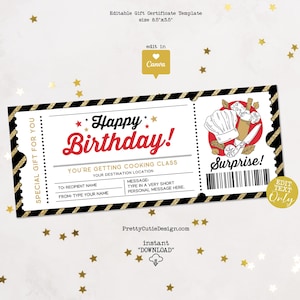 Cooking Class Gift Certificate Editable Template Birthday Surprise
