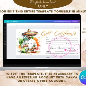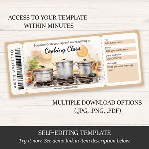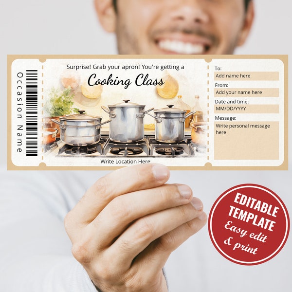Cooking Class Voucher EDITABLE Template Custom Gift Certificate