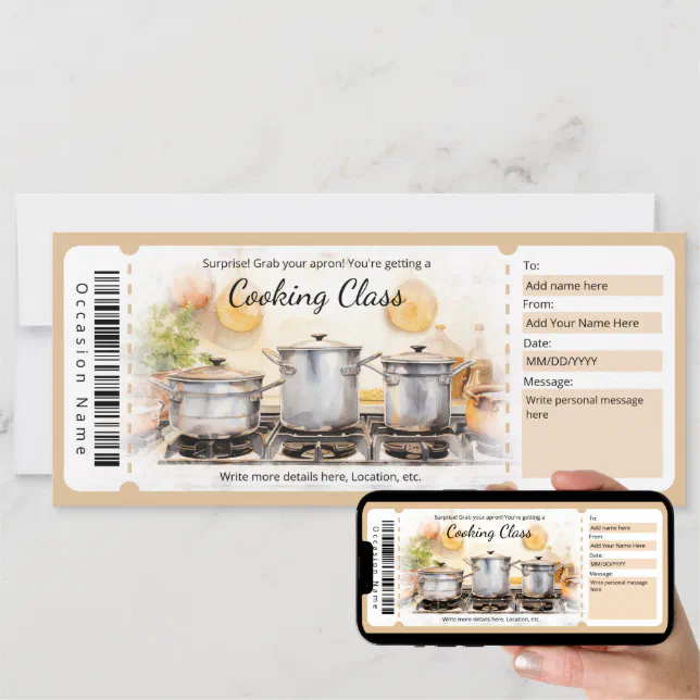 Printable Cooking Class Coupon Template Editable Cooking Class Ticket