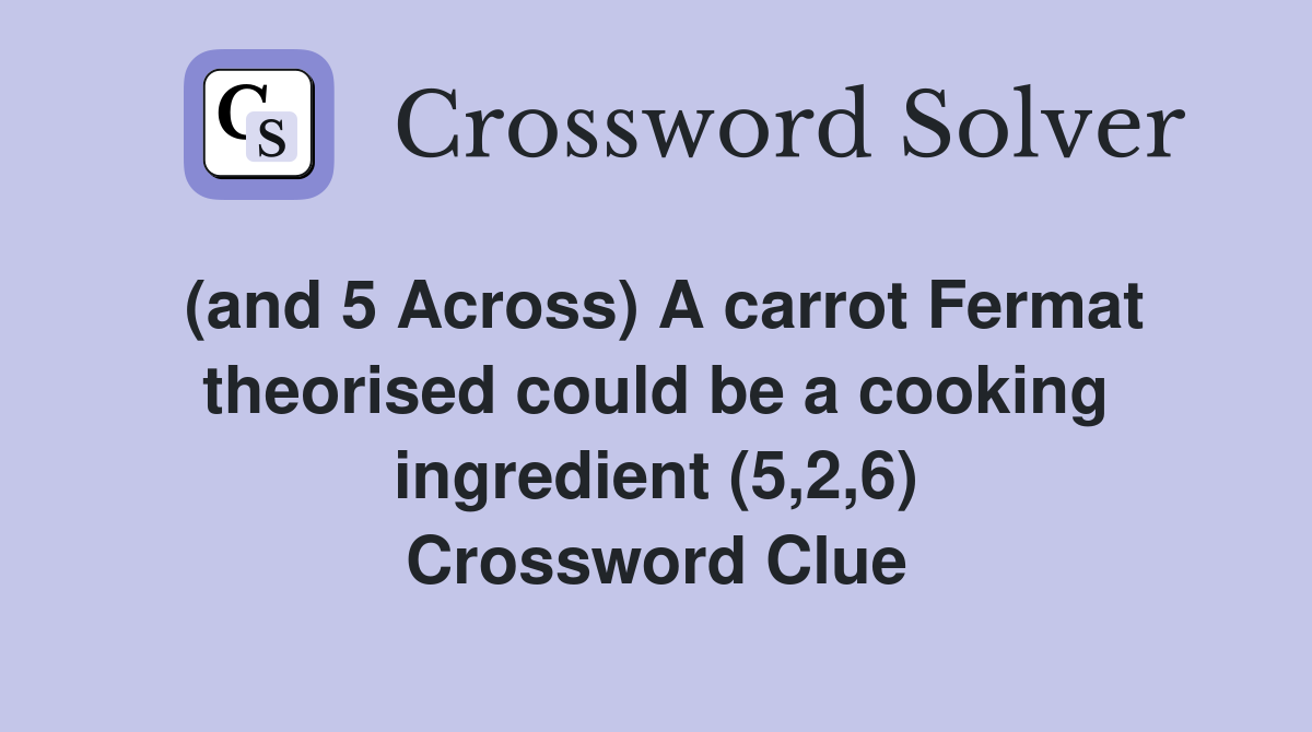 (and 5 Across) A carrot Fermat theorised could be a cooking ingredient