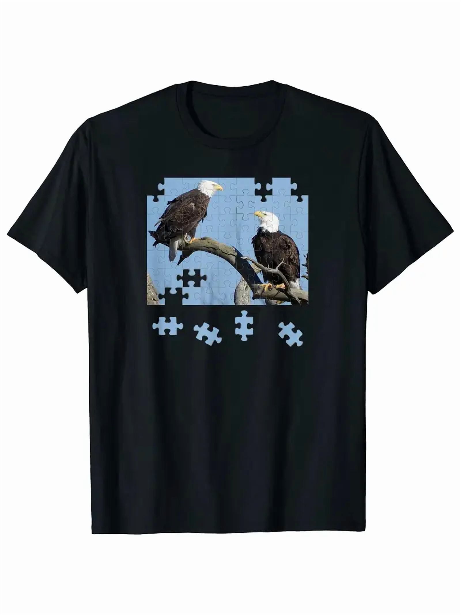 100% cotton tshirts men tee Men #39 S cotton American Bald Eagle Puzzle T