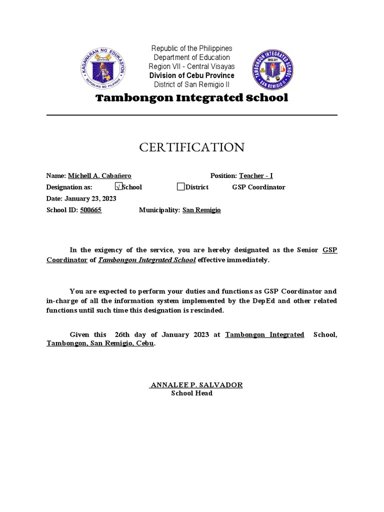 CERTIFICATE COORDINATORSHIP certification of coordinatorship docx