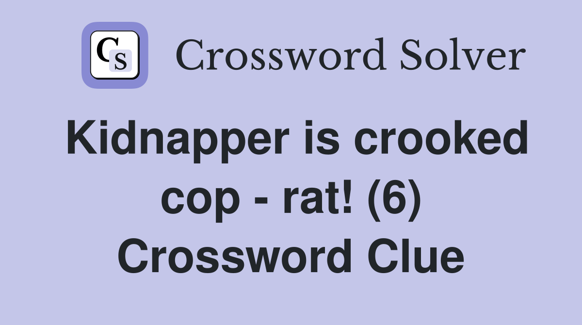 Kidnapper is crooked cop rat (6) Crossword Clue Answers