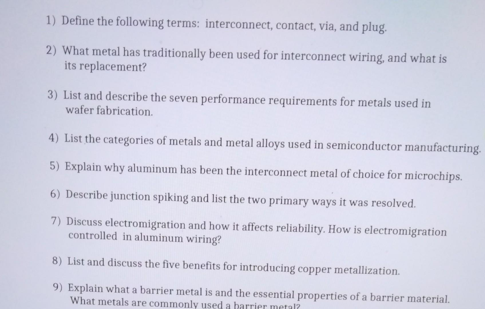 Solved 1) Define the following terms: interconnect contact Chegg com