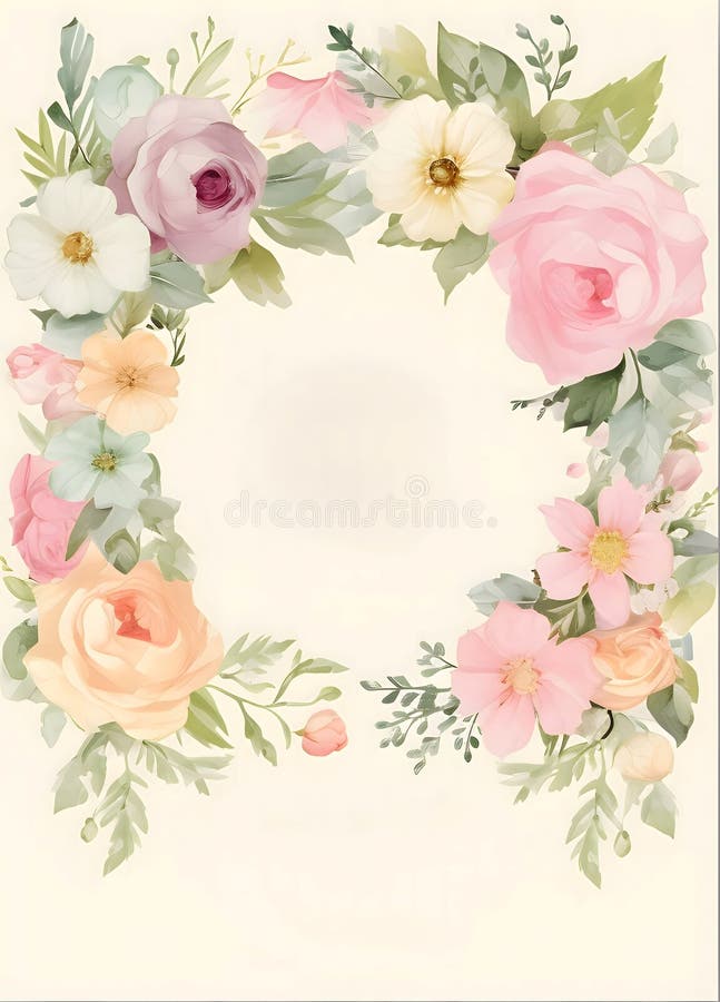 Watercolor Floral Wreath Frame Blank Space for Text and Copy paste