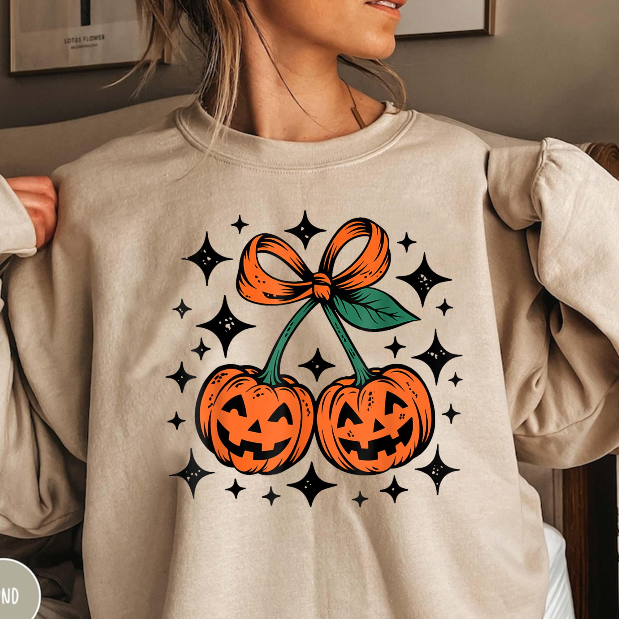 Coquette Pumpkin Cherry Sweatshirt Cute Fall Halloween Pullover with
