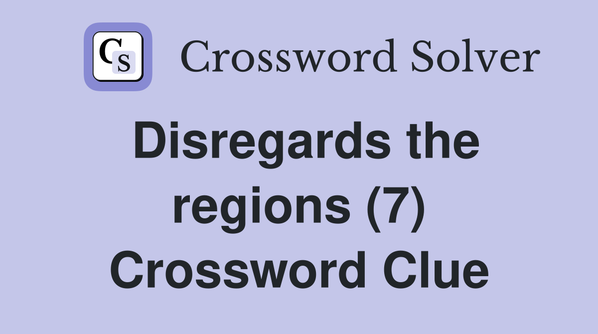 Disregards the regions (7) Crossword Clue Answers Crossword Solver