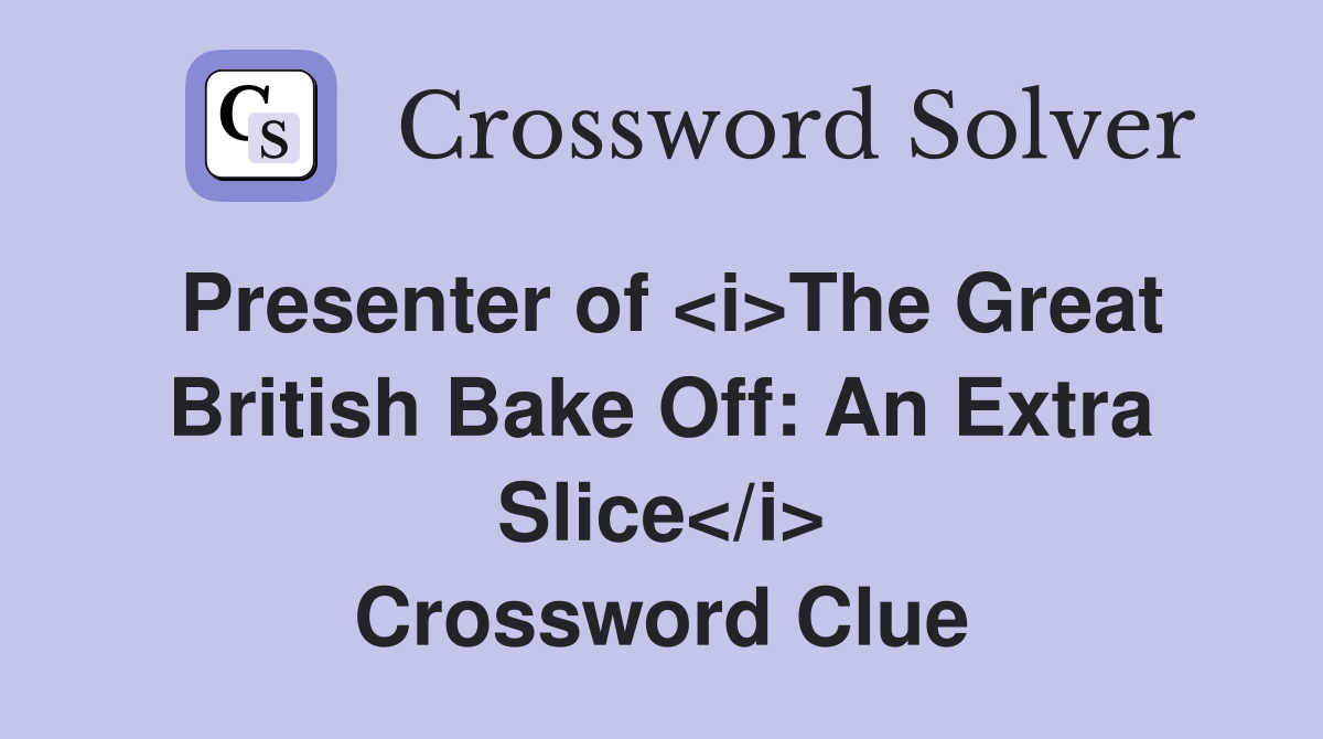 Presenter of The Great British Bake Off: An Extra Slice Crossword