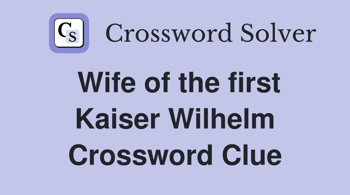 Wife of the first Kaiser Wilhelm Crossword Clue Answers Crossword