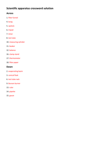Scientific apparatus crossword Teaching Resources