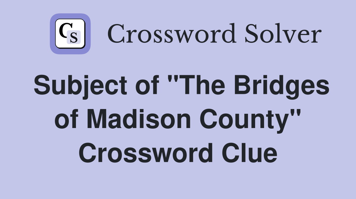 Subject of quot The Bridges of Madison County quot Crossword Clue Answers