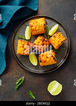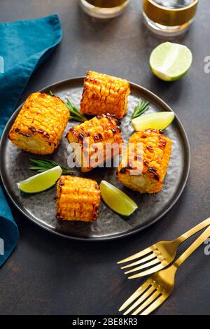 Roasted or grill corn cob with olive oil and salt on a rack Tasty