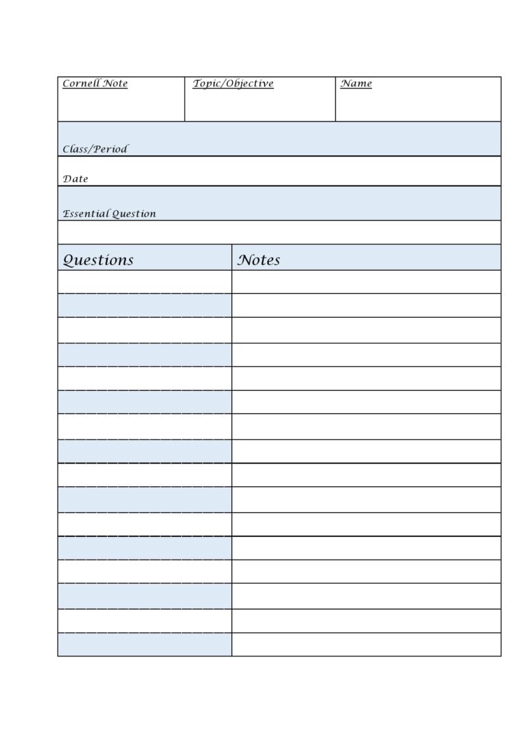 đś Cornell Note Template PDF Free Download (PRINTABLE)