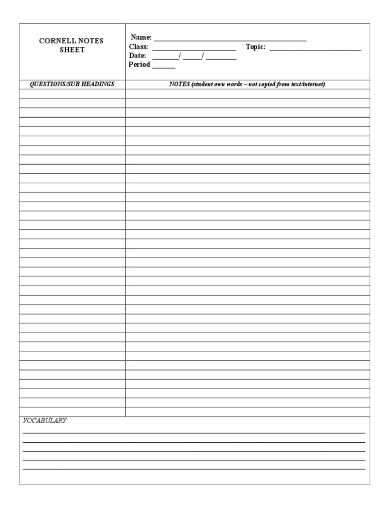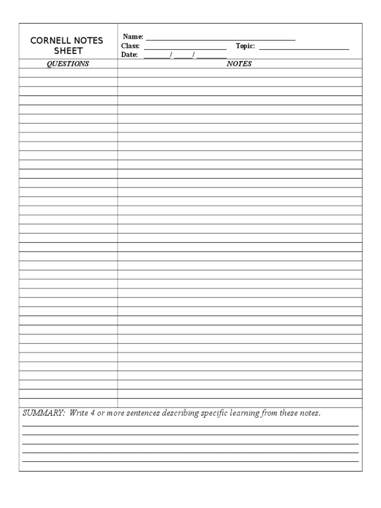🎶 Cornell Notes Template PDF Free Download (PRINTABLE)