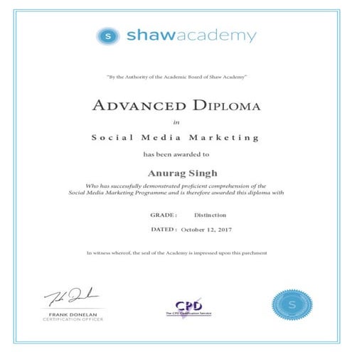 Shaw Academy Social Media Marketing Certificate PDF