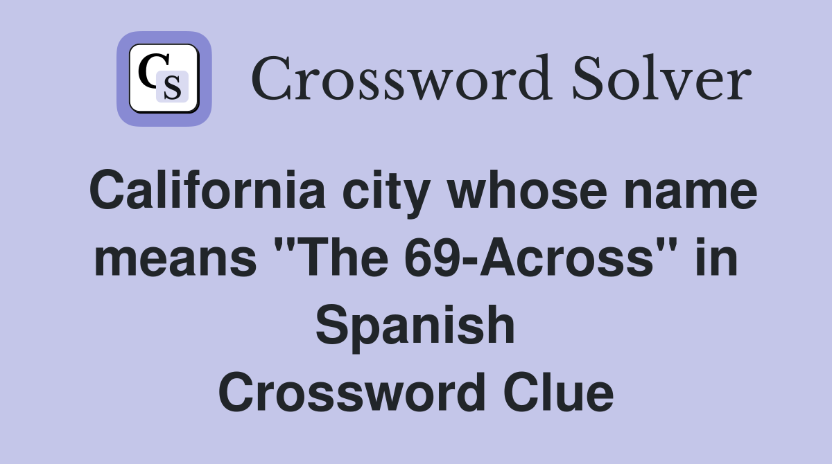 California city whose name means quot The 69 Across quot in Spanish Crossword