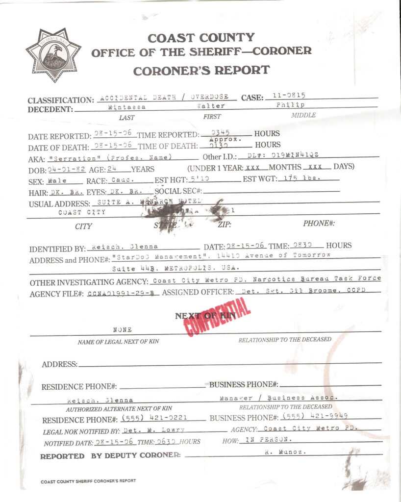 Coroner Report Template