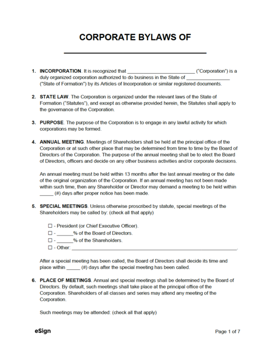 Corporate Bylaws Template Word Mightyprintingdeals com