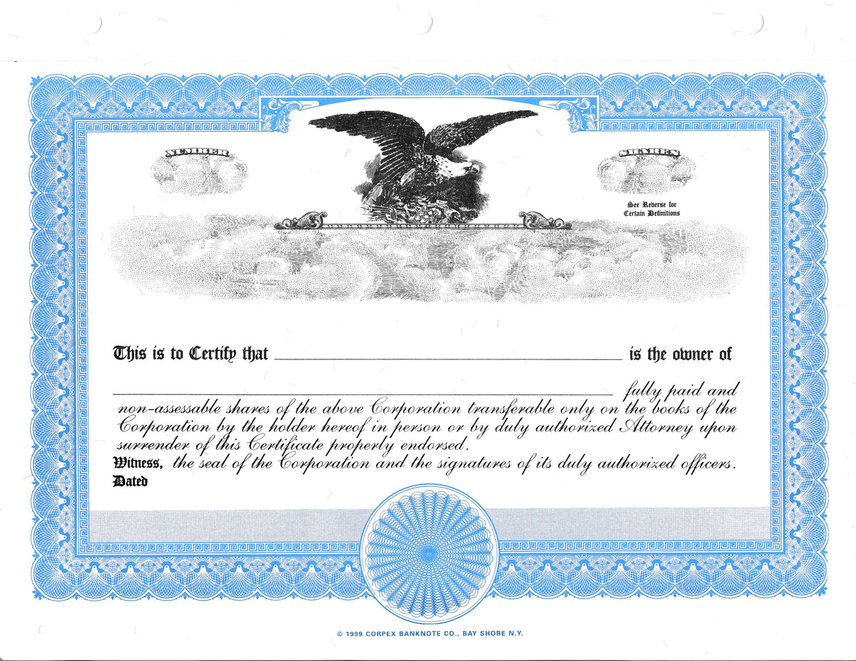 Corporate Stock Certificates For Sale Online Blank With Standard