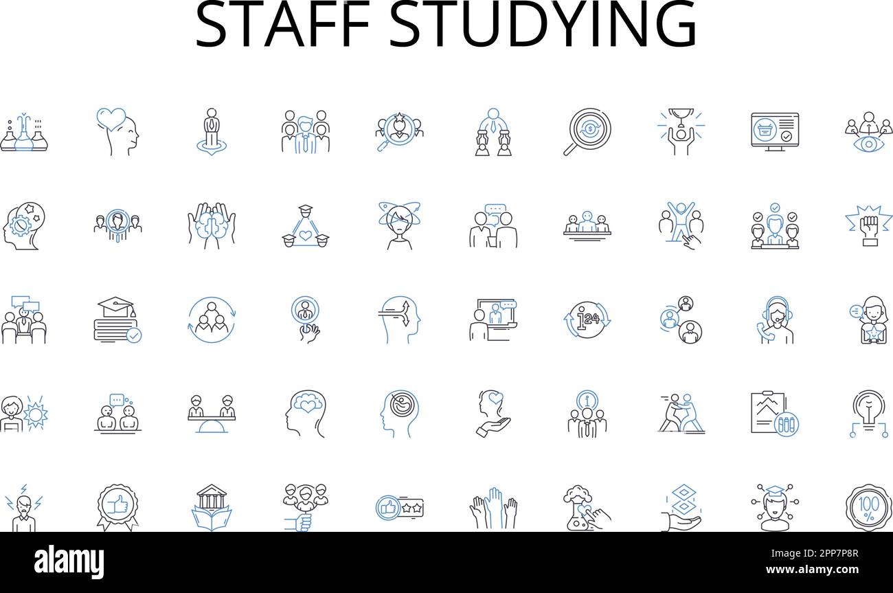 Staff studying line icons collection Contracts Bylaws Resolutions