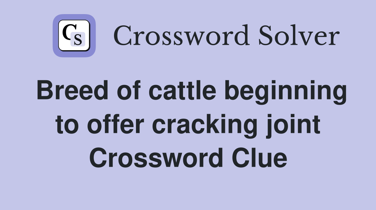 Breed of cattle beginning to offer cracking joint Crossword Clue