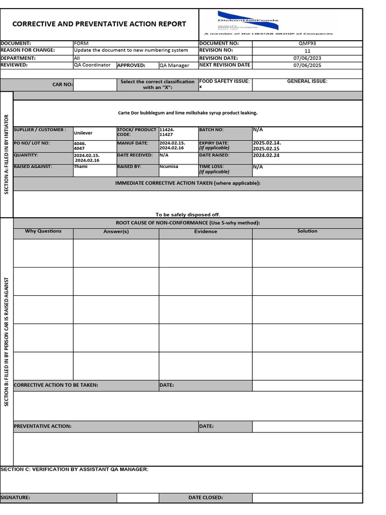 Corrective Action Form Fill Out Sign Online and Download PDF