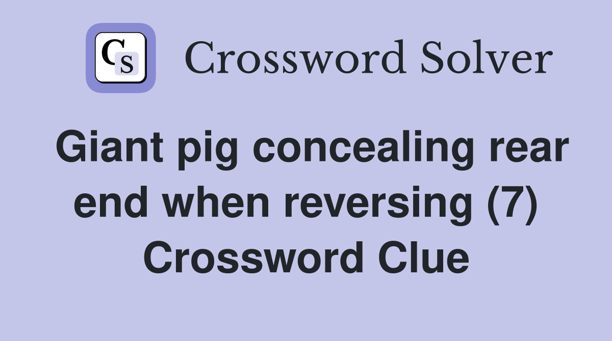 Giant pig concealing rear end when reversing (7) Crossword Clue