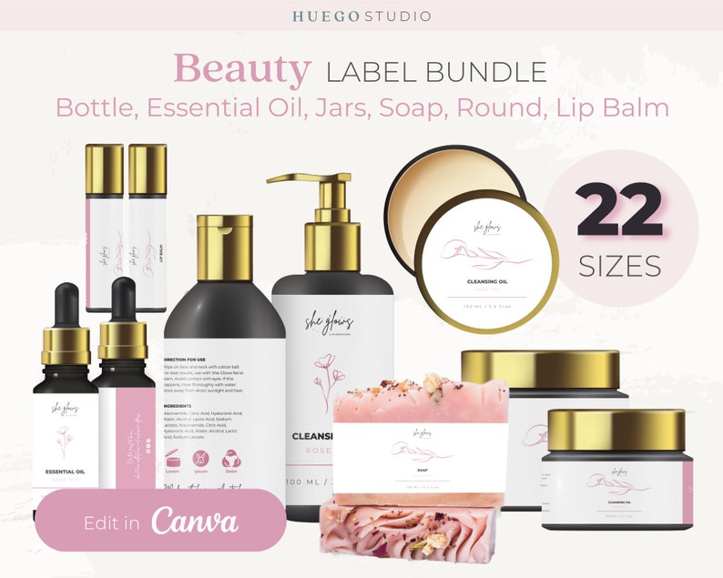 Editable Floral Cosmetic Bottle Label Template 4 Sizes Etsy Bottle
