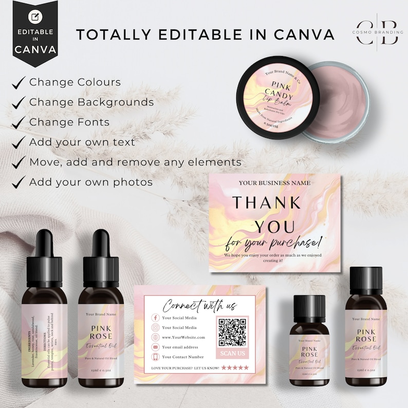 Editable Cosmetic Label Template DIY Custom Beauty Product Label