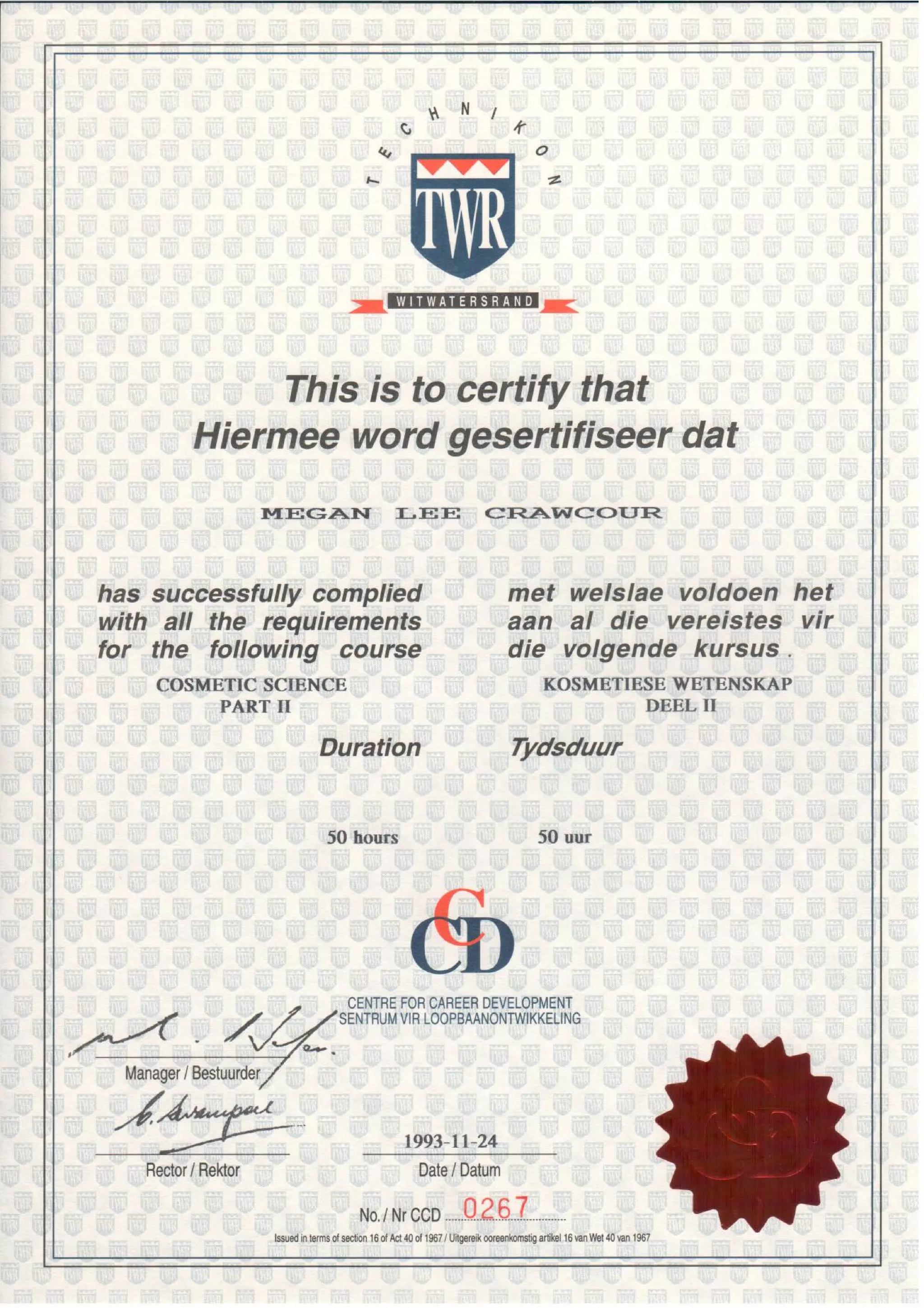 Register Now #1 Rated Cosmetic Formulation Certificate