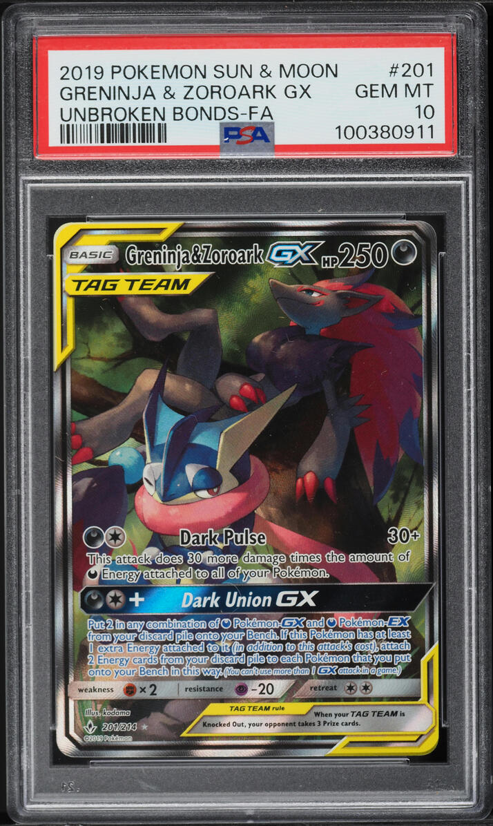 2019 Pokemon SM Unbroken Bonds Alt Art Greninja Zoroark GX #201 PSA
