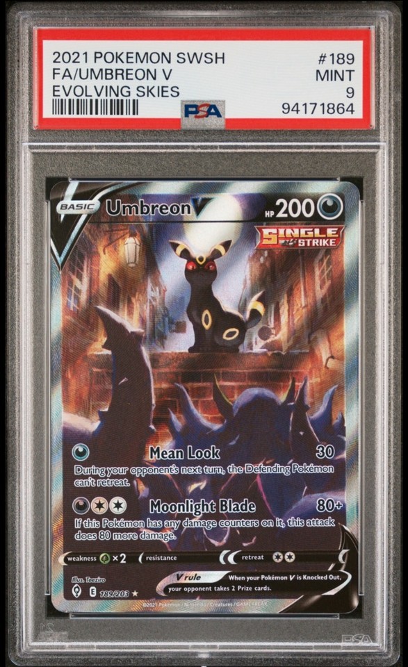 Pokemon Umbreon V 189/203 Evolving Skies Holo Alternative Art PSA 9