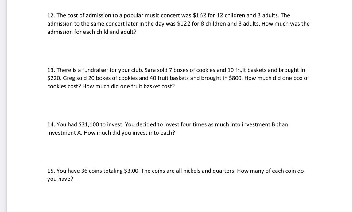 Solved 12 The cost of admission to a popular music concert Chegg com